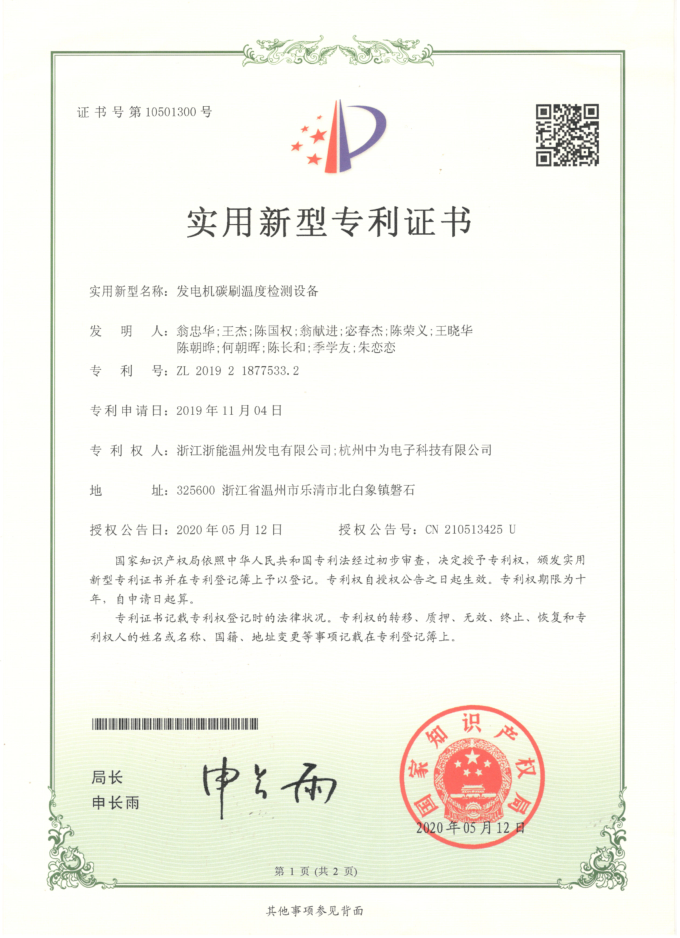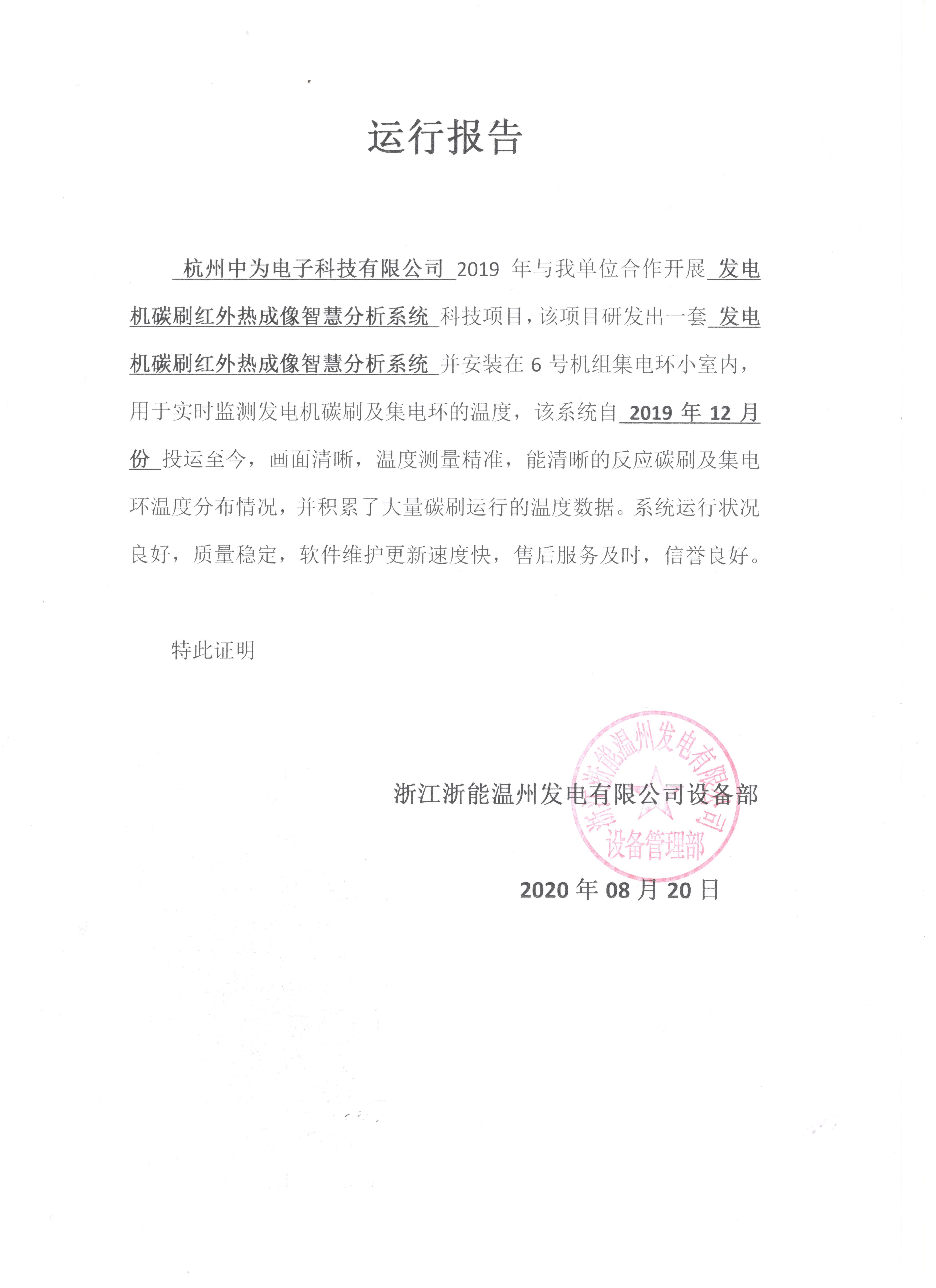 發(fā)電機碳刷在線監(jiān)測系統(tǒng)研發(fā)項目2019年1月份由我公司與浙江浙能溫州發(fā)電有限公司聯(lián)合開展科技項目立項申請,并由浙能集團公司審批通過。項目在2019年9月份正式啟動研發(fā),10月底完成硬件部分的研發(fā)有生產(chǎn),并于11月12日在溫州電廠6號機組集電環(huán)小室內(nèi)完成安裝。11月底軟件部分的也基本完成,12月5日完成軟硬件的對接工作,12月13日由溫州電廠內(nèi)部組織項目驗收。2020年1月9日在溫州召開了專家驗收會議,參加會議的技術(shù)專家有陳彪(浙江浙能技術(shù)研究院,高級工程師)、彭福仁(浙江溫州特魯萊發(fā)電有限責任公司,高級工程師)、楊幫敏(浙江浙能樂清發(fā)電有限責任公司,高級工程師)、李時欣(浙江浙能紹興濱海熱電有限公司,注冊消防工程師)、瞿瀟(浙江浙能長興發(fā)電有限公司,高級工程師)。