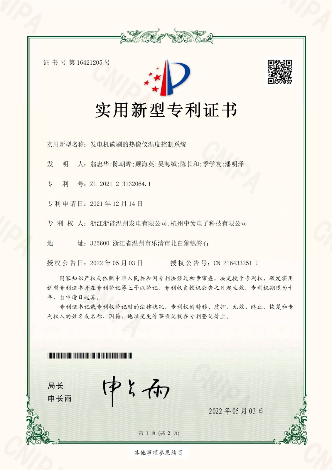 本項目已申請2項實用新型專利,并發(fā)表一篇論文;一項專利名稱為“發(fā)電機碳刷溫度檢測設備”,申請?zhí)枮镃N201921877533.2 ;一項專利名稱為“發(fā)電機碳刷紅外熱像儀”,申請?zhí)枮镃N201921877571.8;論文名稱為“集電環(huán)-碳刷紅外熱成像在線監(jiān)測系統(tǒng)”,電力系統(tǒng)裝備。