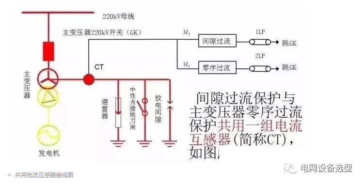 通常情況下,當(dāng)一臺(tái)變壓器生產(chǎn)完畢且在出廠前都會(huì)裝設(shè)有中性點(diǎn)CT,那么我們?yōu)榱诉_(dá)到降低錢財(cái)消耗的目的,零序過流就采用的是這個(gè)自帶的中性點(diǎn)CT,而間隙過流則采用的是單獨(dú)CT的綜合接線。