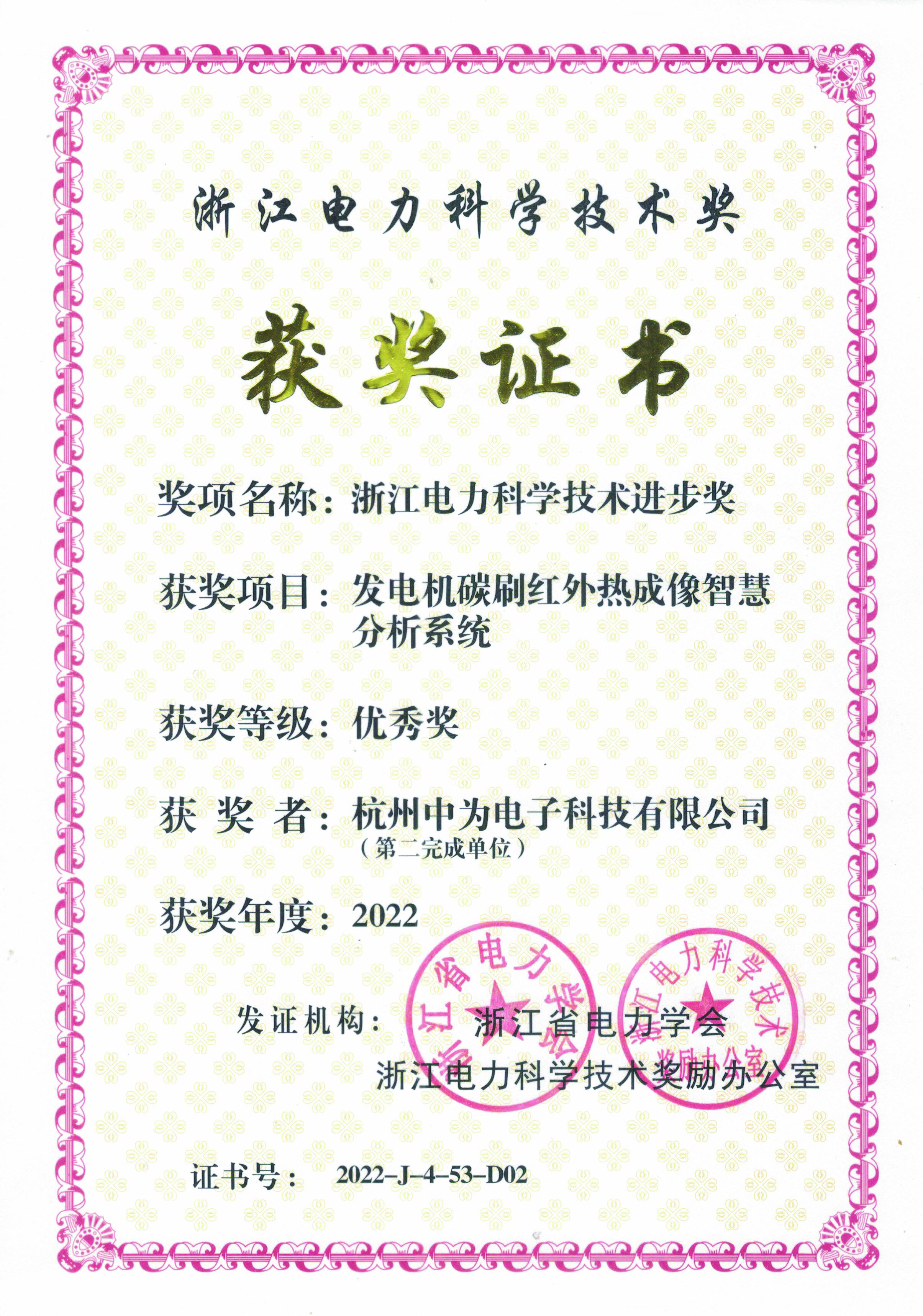 杭州中為電子科技有限公司榮獲浙江電力科學(xué)技術(shù)獎