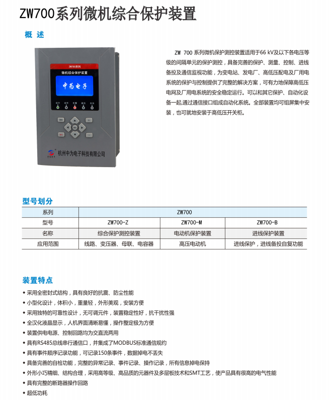 ZW700系列微機(jī)綜合保護(hù)裝置