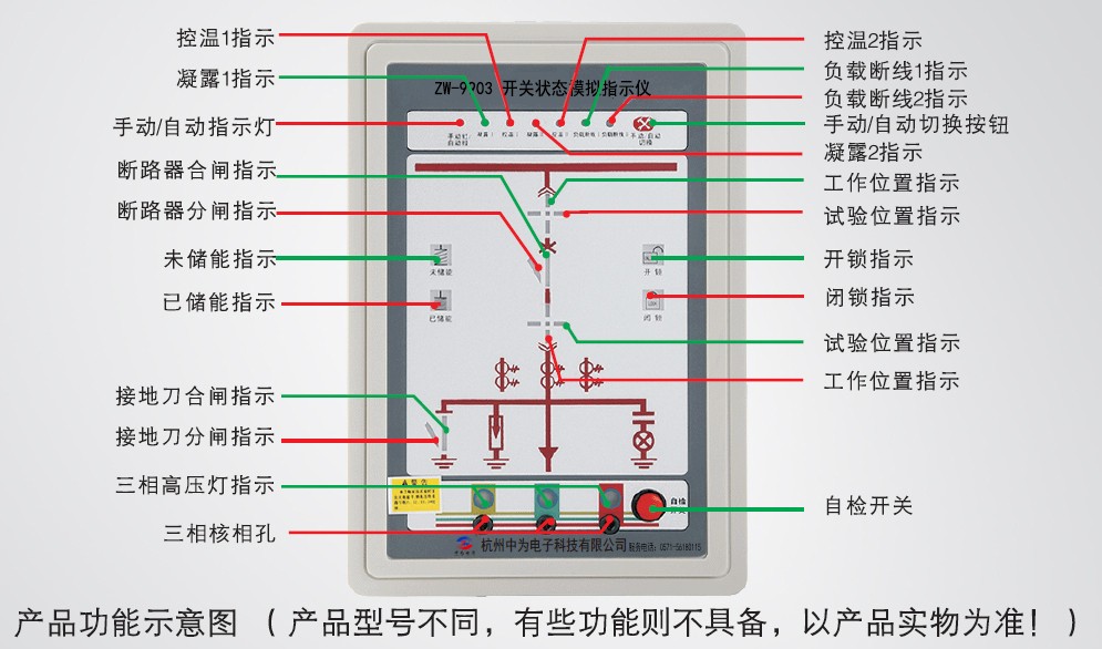 工作位置觸點閉合時,紅色垂直模擬條點亮,顯示斷路器位于工作位置;試驗位置觸點閉合時,綠色水平模擬條點亮,顯示斷路器位于試驗位置。