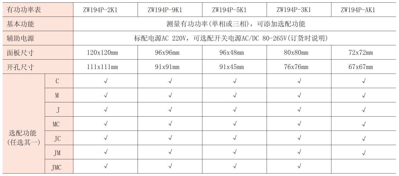 注:“√”代表可選配置,“J”代表報警輸出,“M”代表模擬量輸出,“K”代表開關(guān)量輸入,“C”代表