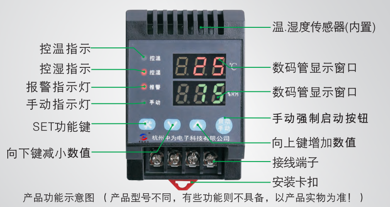 本產(chǎn)品具有測量誤差小、控制精度高、顯示清晰明了、大方得體的優(yōu)點(diǎn),可廣泛應(yīng)用于各種需要高精度控溫及控濕場合。采用傳感器內(nèi)置,不需要外接傳感器,對同一環(huán)境溫度、濕度進(jìn)行實(shí)時(shí)監(jiān)控,數(shù)碼管顯示設(shè)定值和測量值。根據(jù)預(yù)設(shè)控制值,自動(dòng)或手動(dòng)強(qiáng)制啟動(dòng)控制負(fù)載為調(diào)節(jié)環(huán)境的溫度和濕度。