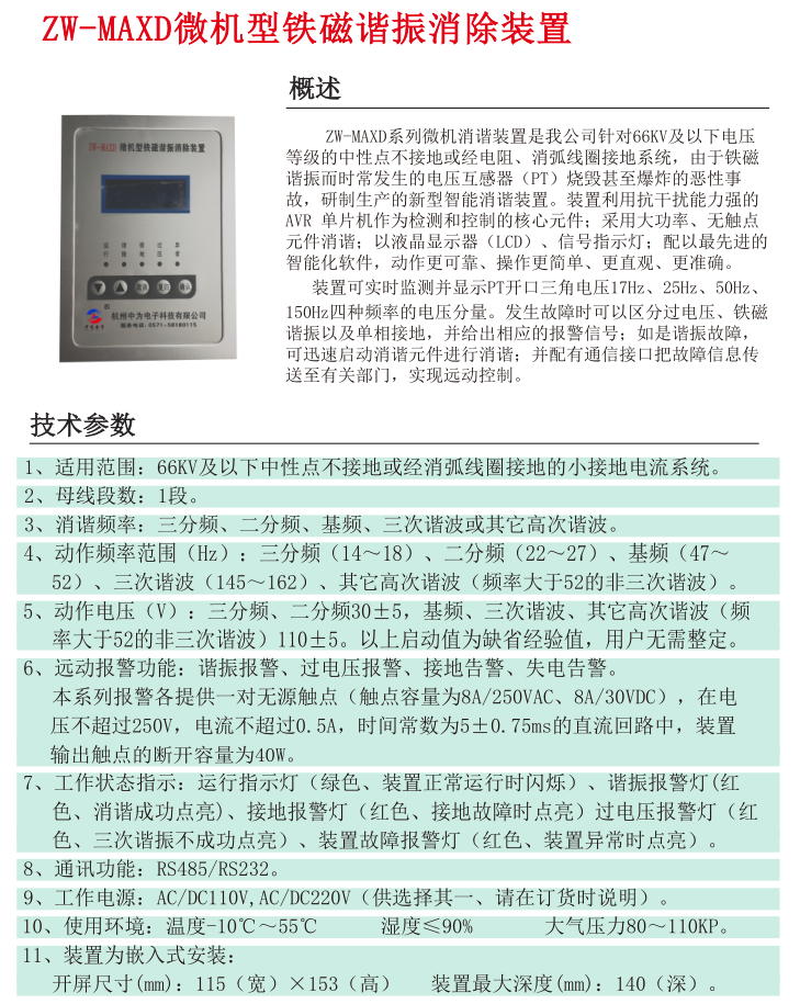 ZW-MAXD微機型鐵磁諧振消除裝置